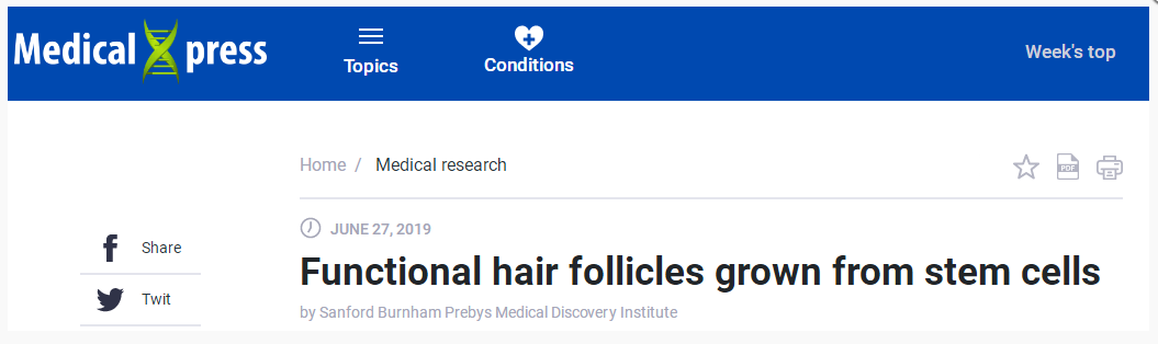 Medical Press:功能性毛囊由干細胞生長