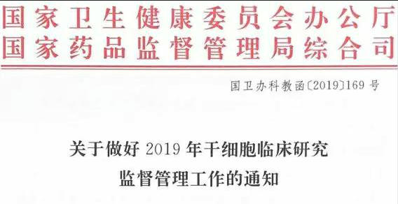 國(guó)家衛(wèi)健委和藥監(jiān)局聯(lián)合印發(fā)《關(guān)于做好2019年干細(xì)胞臨床研究監(jiān)督…